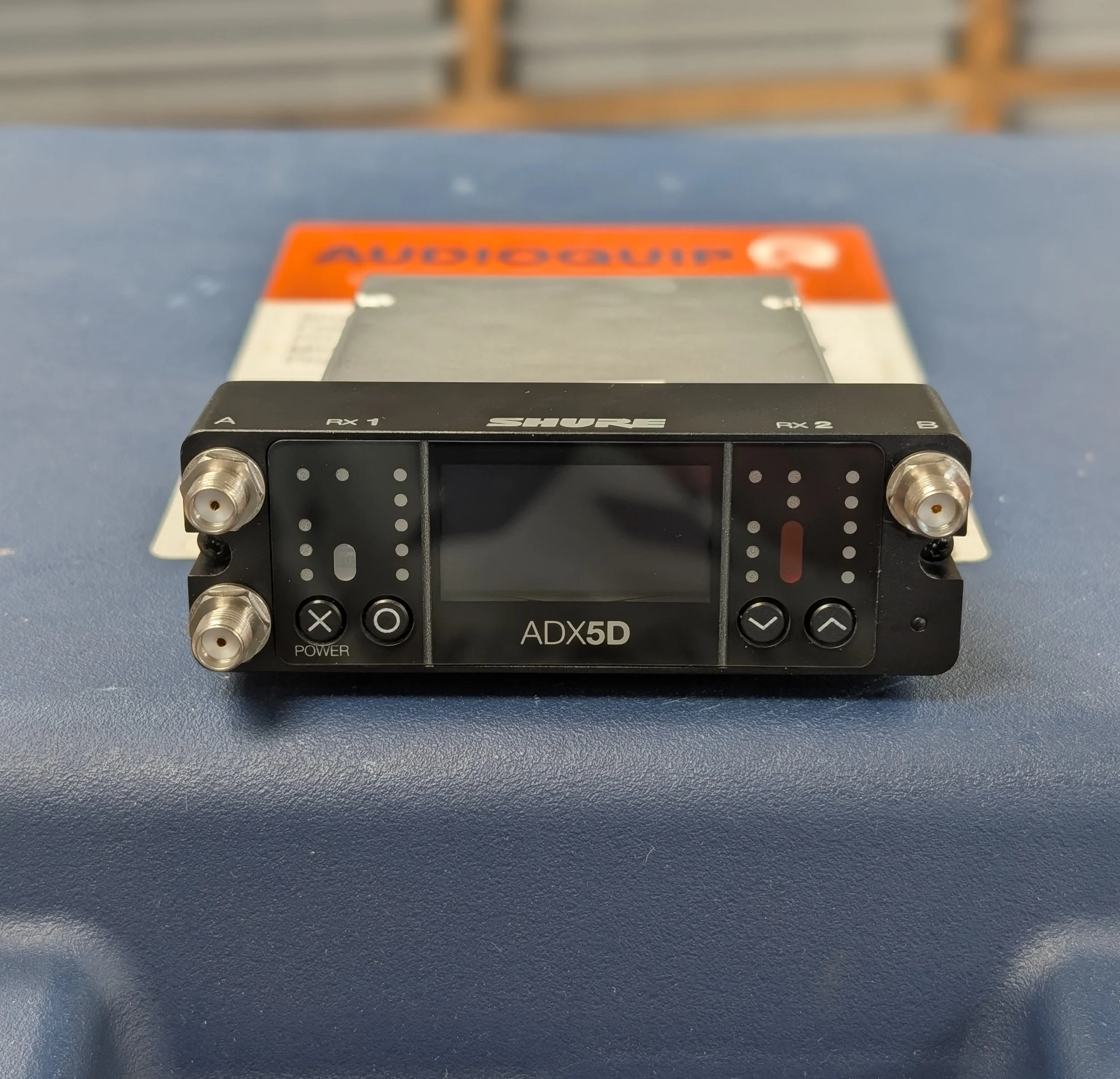The ADX5D is the battery powered, mobile version of the AD4D dual [2-channel] wireless receiver.